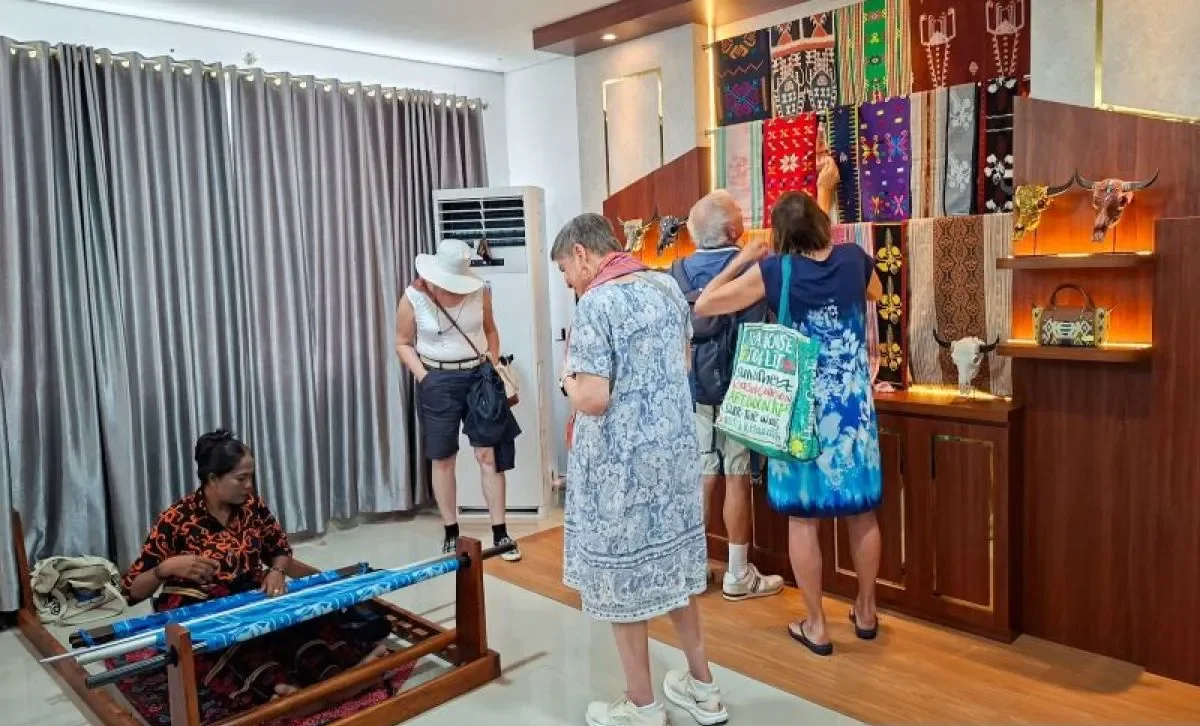 Selama kunjungan di Dekranasda Kota Kupang, para wisatawan berkesempatan membeli berbagai produk UMKM seperti fesyen tenun, kain tenun ikat, kopi, serta menyaksikan langsung proses pembuatan tenun.